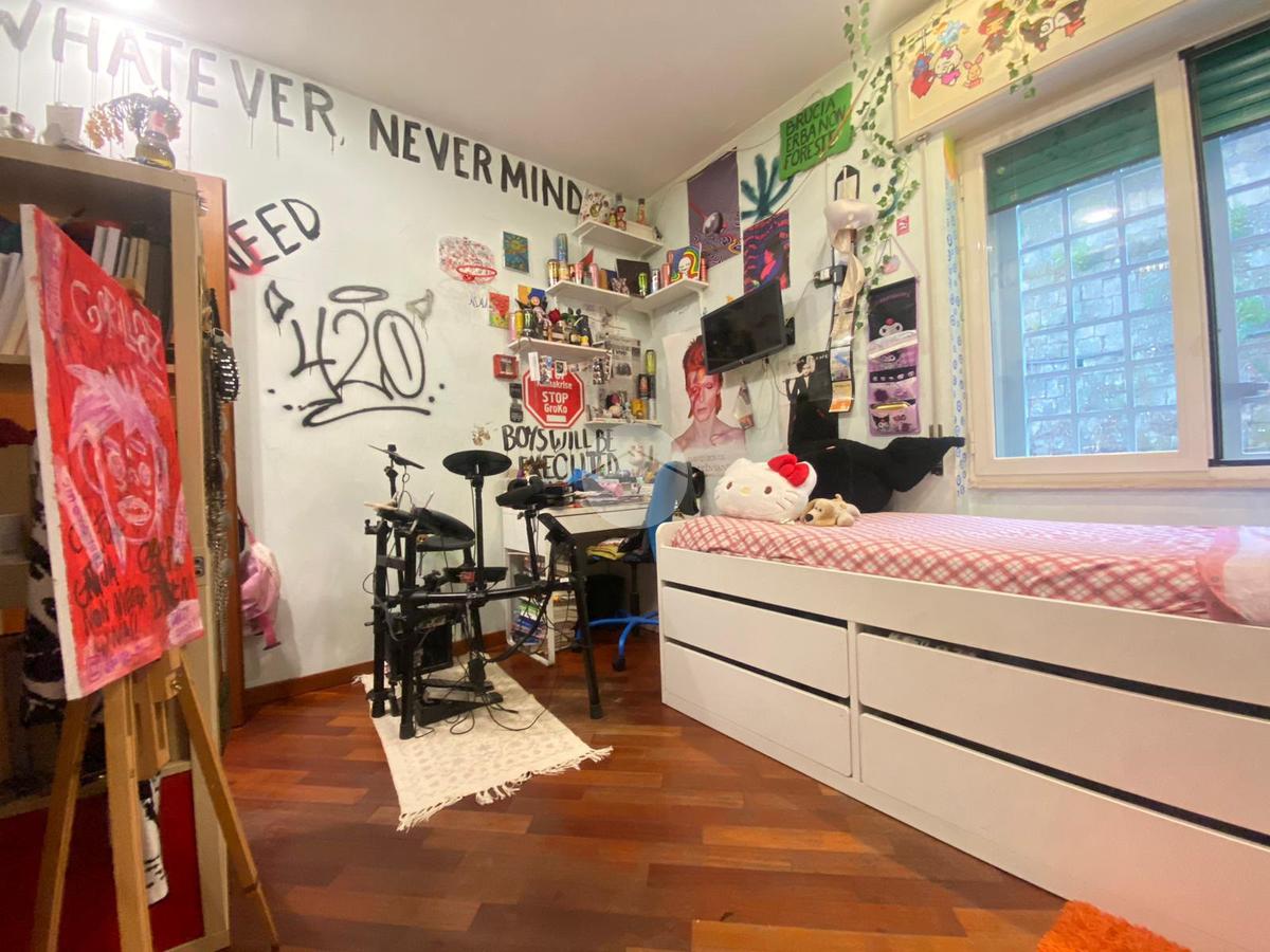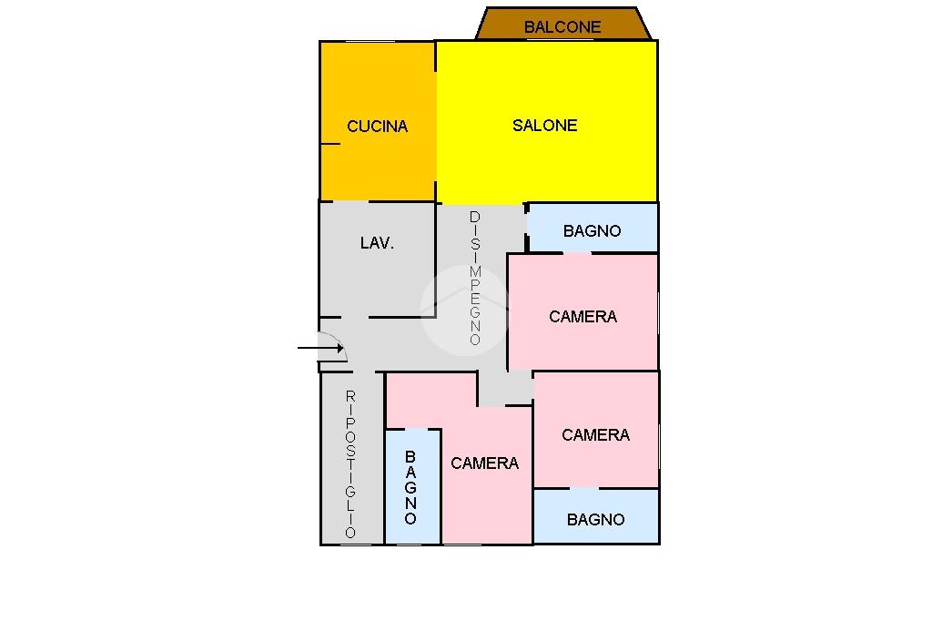 Al suo interno è composto di: ingresso in disimpegno, ampio soggiorno con balcone, cucina abitabile, tre camere da letto, studio e tre bagni.