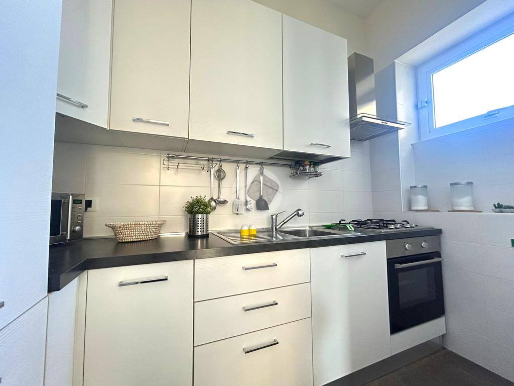 L'appartamento, interessato da una recente ristrutturazione in chiave moderna, offre un'ottima funzionalità per la sua distribuzione degli ambienti attualmente così disposti: Ingresso in soggiorno, cucina, corridoio, due camere da letto e bagno. Gli ampi infissi moderni a taglio termico consento un ottimo isolamento termico ed acustico oltre a conferire luminosità all'appartamento.